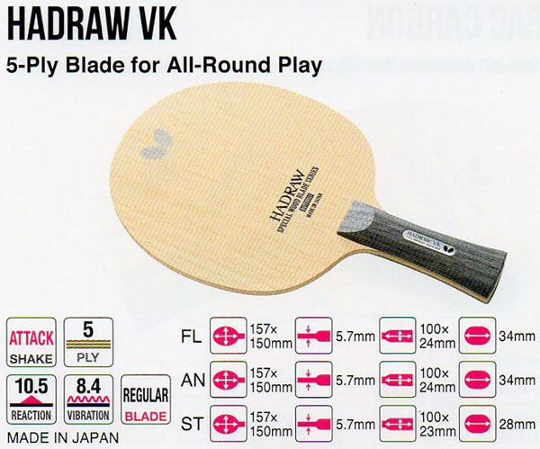 BUTTERFLY Hadraw VK – Mango: AN – FL – ST – Reacción: 10.5 – Vibración: 8.4 – Tipo de Juego: ataque – Peso: 85g
