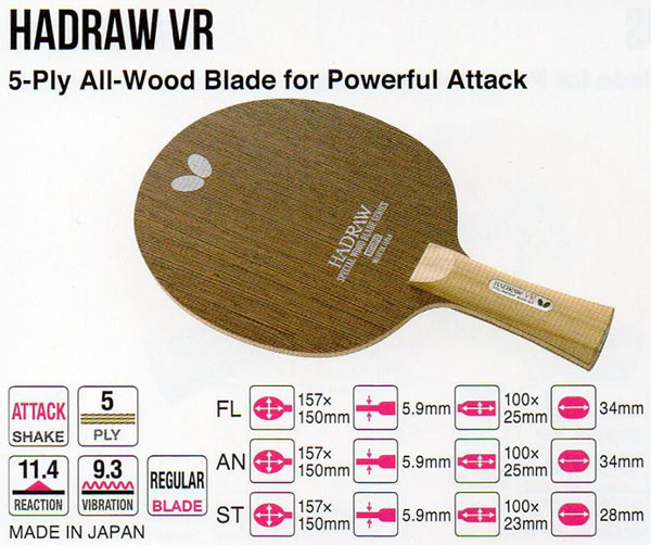 BUTTERFLY Hadraw VR – Mango: AN – FL – ST – Reacción: 11.4 – Vibración: 9.3 – Tipo de Juego: ataque – Peso: 89g