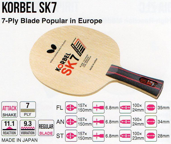 BUTTERFLY Korbel SK7 – Mango: FL – ST – Reacción: 11.1 – Vibración: 9.3 – Tipo de Juego: ataque – Peso: 92g