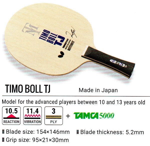 BUTTERFLY Timo Boll TJ (Tamca 5000 Carbon) – Mango: FL – Reacción: 10.5 – Vibración: 11.4 – Tipo de Juego: ataque – Peso: 70g