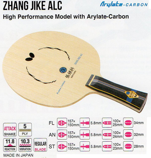 BUTTERFLY Zhang Jike ALC (Arylate-Carbon) – Mango: AN – FL – ST – Reacción: 11.8 – Vibración: 10.3 – Tipo de Juego: ataque – Peso: 87g