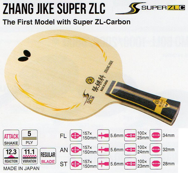 BUTTERFLY Zhang Jike Super ZLC (Super ZL-Carbon) – Mango: FL – Reacción: 12.3 – Vibración: 11.1 – Tipo de Juego: ataque – Peso: 90g